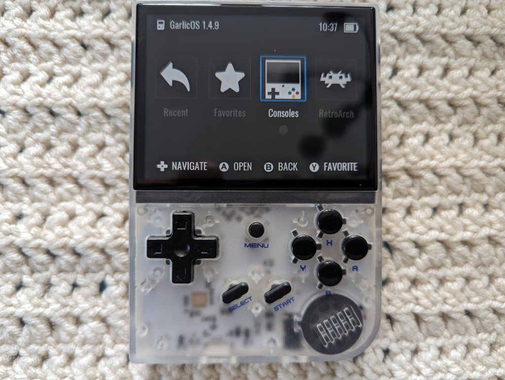 I immediately did a fresh install of GarlicOS on the RG 35XX and never looked back. It is very similar to OnionOS on the Mini+ though much simpler. There is a lot of configurability built-in but it requires you to get in to modifying text files and such and I am not interested in that. GarlicOS on the Mini+ has a lot of that configurability built in to the user interface. The RG 35XX uses Retro-Arch to emulate as well so it’s a very similar experience at this point between both handheld consoles.
