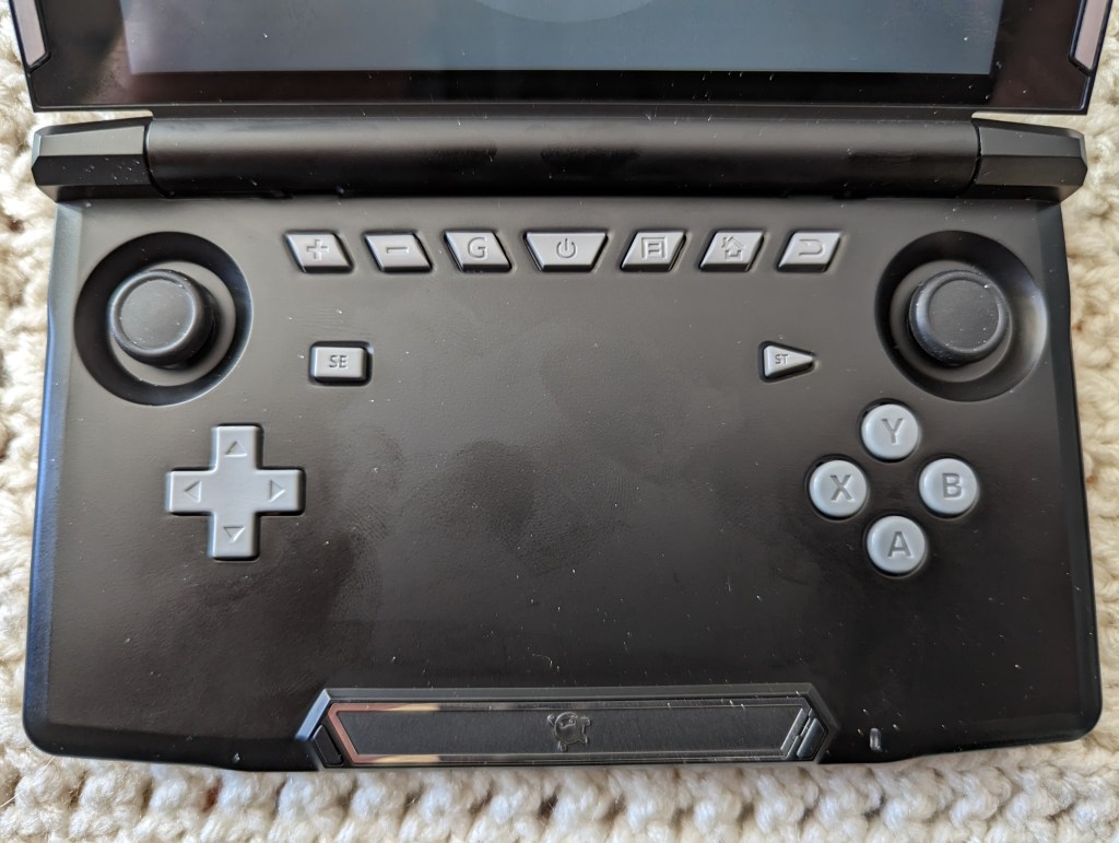In between you have your select and start buttons. To the left and down from the select button you have your compact d-pad and to the right of that you have your A, B, X and Y buttons in the Xbox configuration rather than the Nintendo style B, A, Y, X.